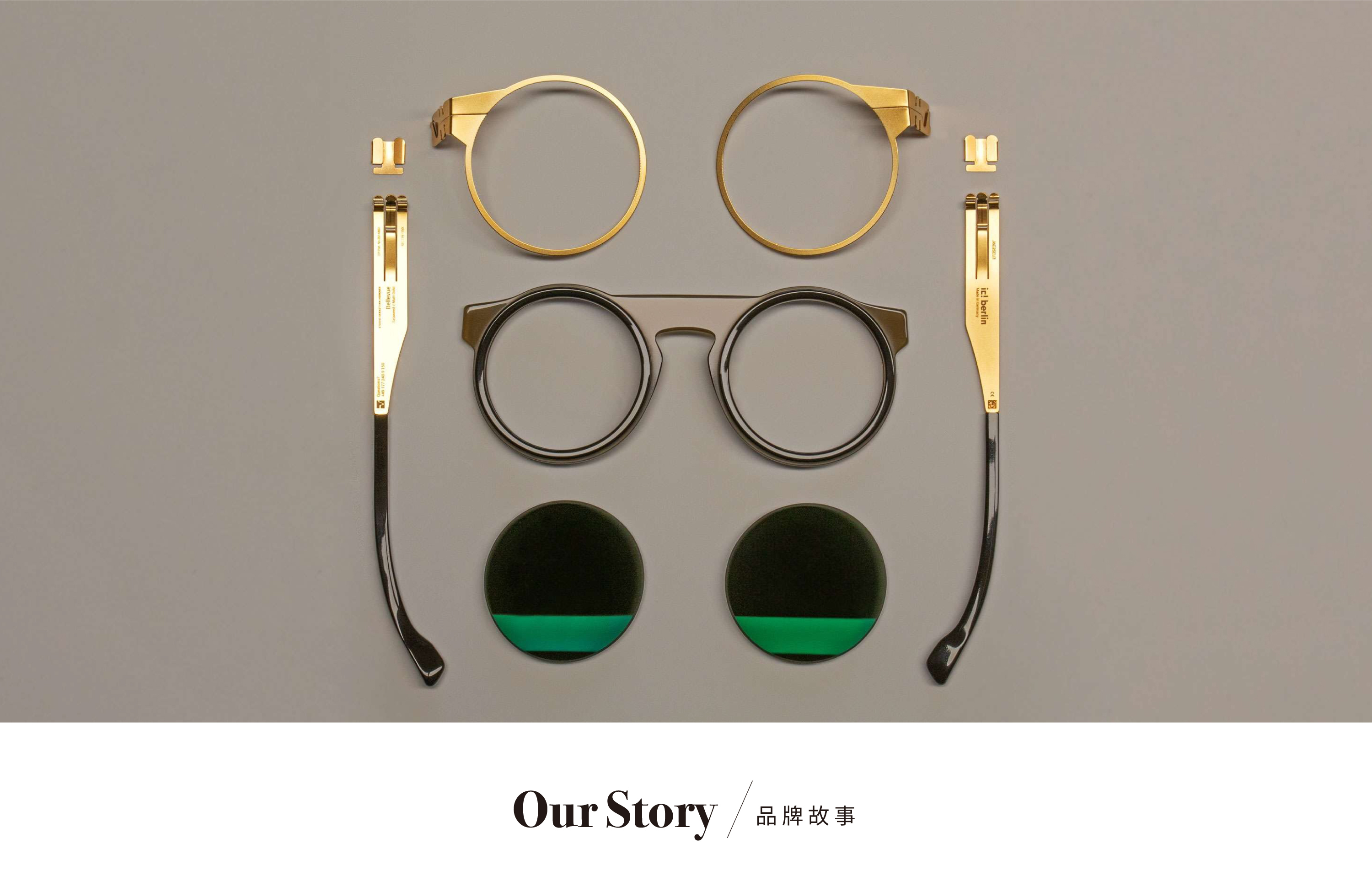 這樣新奇的想法,在品牌創立之初受到強烈質疑,甚至被拒絕生產,然而品牌的概念很簡單,就是要讓看到 ic! berlin 眼鏡展示的所有觀者,驚訝於獨門設計,並發出「I see! I see!(我了解了)」的聲音,這也成為品牌名稱的由來。